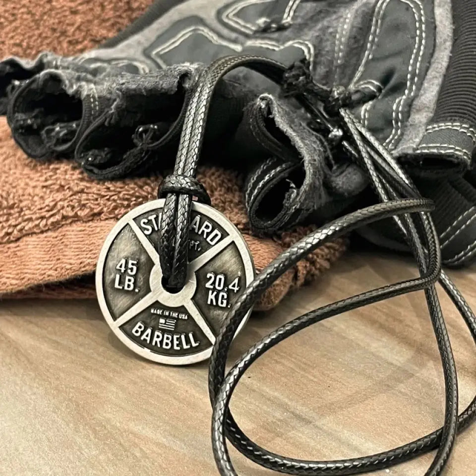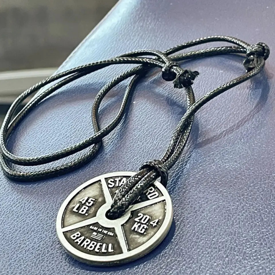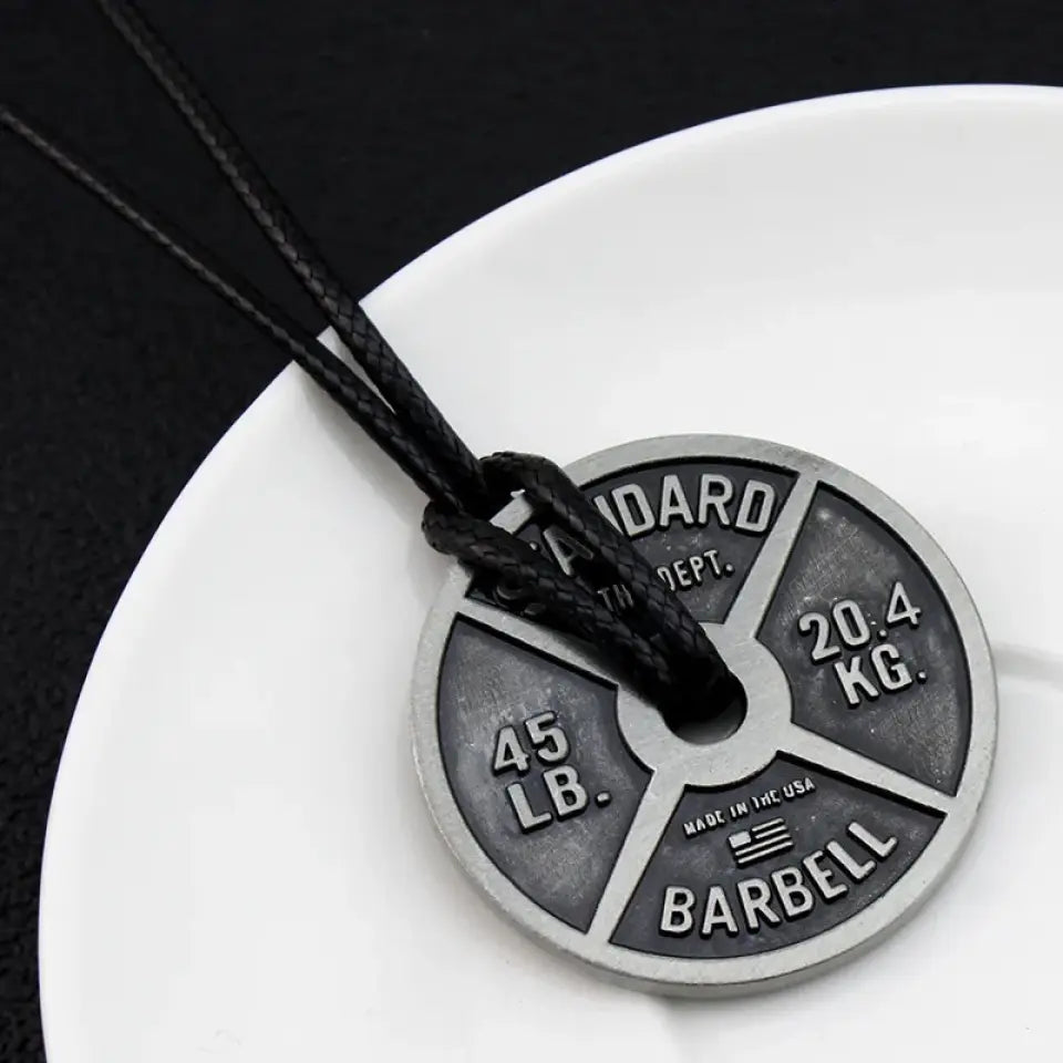 Men's Stainless Steel Fitness Gym Necklace with Weight Plate Pendant 023