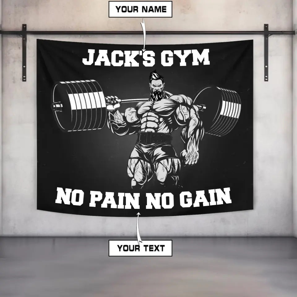 Personalized Motivational Gym Flags Banners | No Pain No Gain 009
